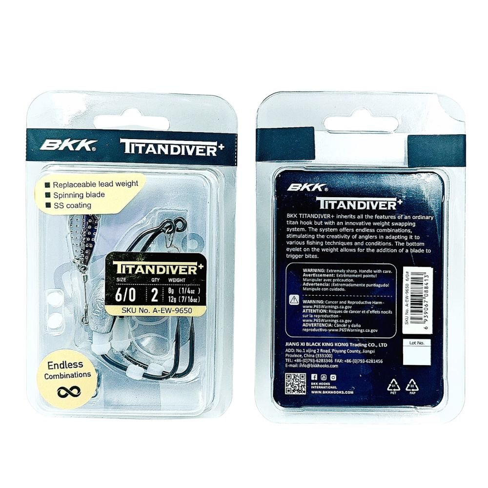 The BKK Titan Diver+ Worm Hook is the latest evolution of the Titan worm hook series, designed for anglers who need a fully customizable weedless soft bait setup. Featuring an innovative interchangeable weight system, the Titan Diver+ allows anglers to adjust both sink rate and lure balance for different fishing conditions. Built for soft plastics, swimbaits, paddle tails, and creature baits, it offers superior weedless presentation with maximum hook-up efficiency.
