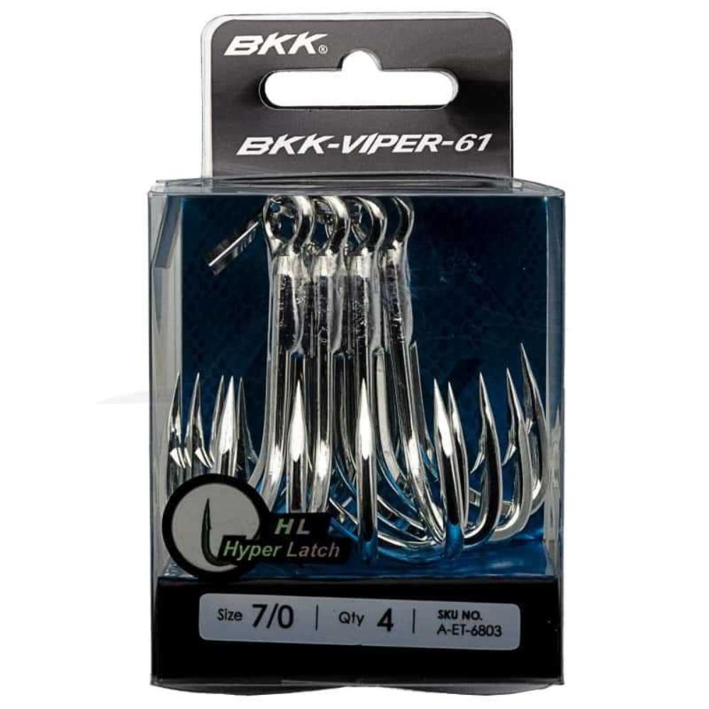 The BKK Viper-61 is a premium heavy-duty 6X treble hook built for the toughest offshore and big-game fishing conditions. Developed as the stronger evolution of the award-winning Viper-41, the Viper-61 is engineered for targeting giant tuna, GT, kingfish, cubera snapper, and other hard-fighting pelagics. Built with Hyper Carbon Steel (HCS), it delivers extreme strength, sharpness, and durability while maintaining excellent hook-up performance on fast-moving lures.