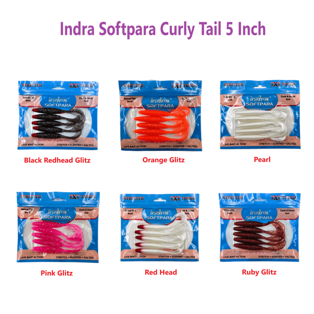 Indra Softpara Curly Tail 5 inch Soft Lures new generation of soft swimbait that has been specially developed to catch more fish from indian waters. It is the ultimate soft bait which has industry leading features; thanks to its 3S Tech manufacting.