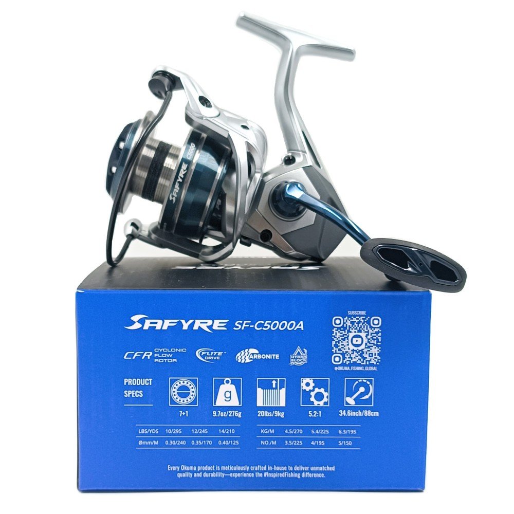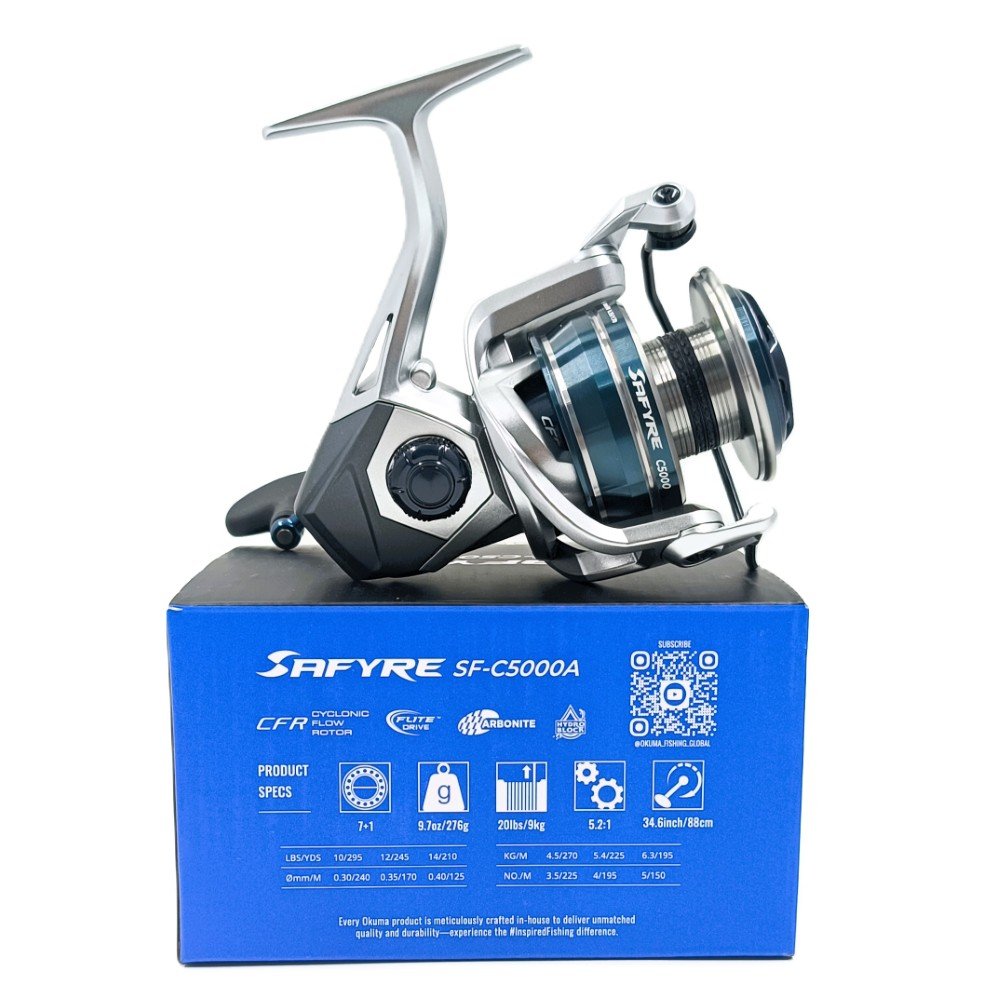 The Okuma Safyre Spinning Reels are designed for anglers who demand smooth performance, durability, and reliability in both freshwater and light saltwater fishing. Built with Okuma’s precision engineering, the Safyre reel delivers balanced performance with a lightweight yet strong body construction.
