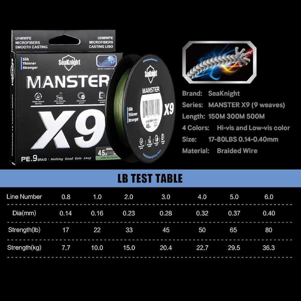 Upgrade your setup today with the SeaKnight Manster X9 300M braided fishing line and experience next-level casting distance, durability, and control.